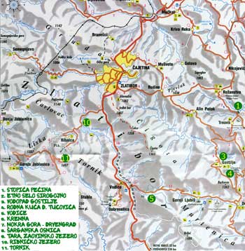 Pogledajte mapu Zlatibora i njegove okoline. Ove dve karte možete kupiti u centru Zlatibora kod prodavaca knjiga.